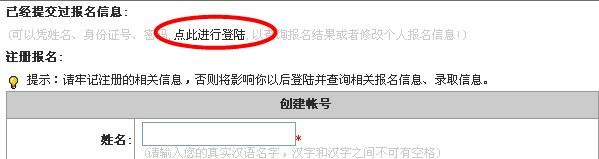 第五步:再次进入报名系统。需重新进行信息更改的考生,进入考生报名系统后,点击“点此进行登录”,可以更改个人信息。